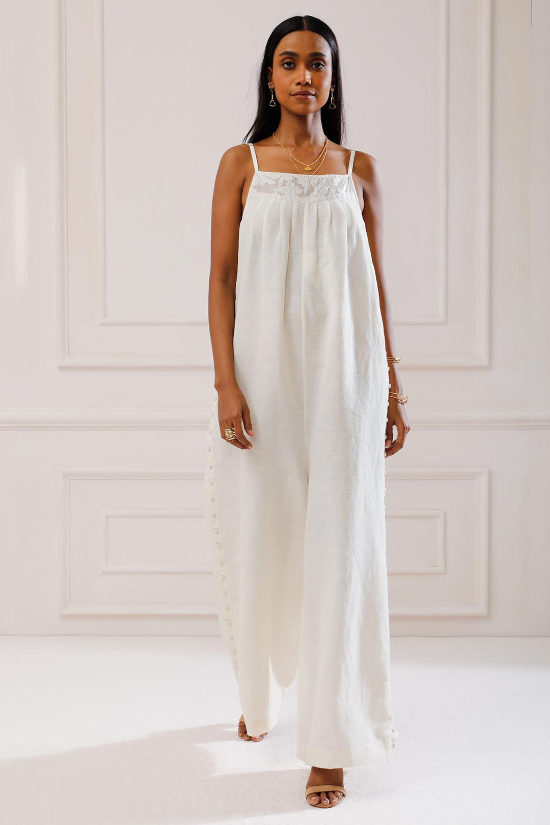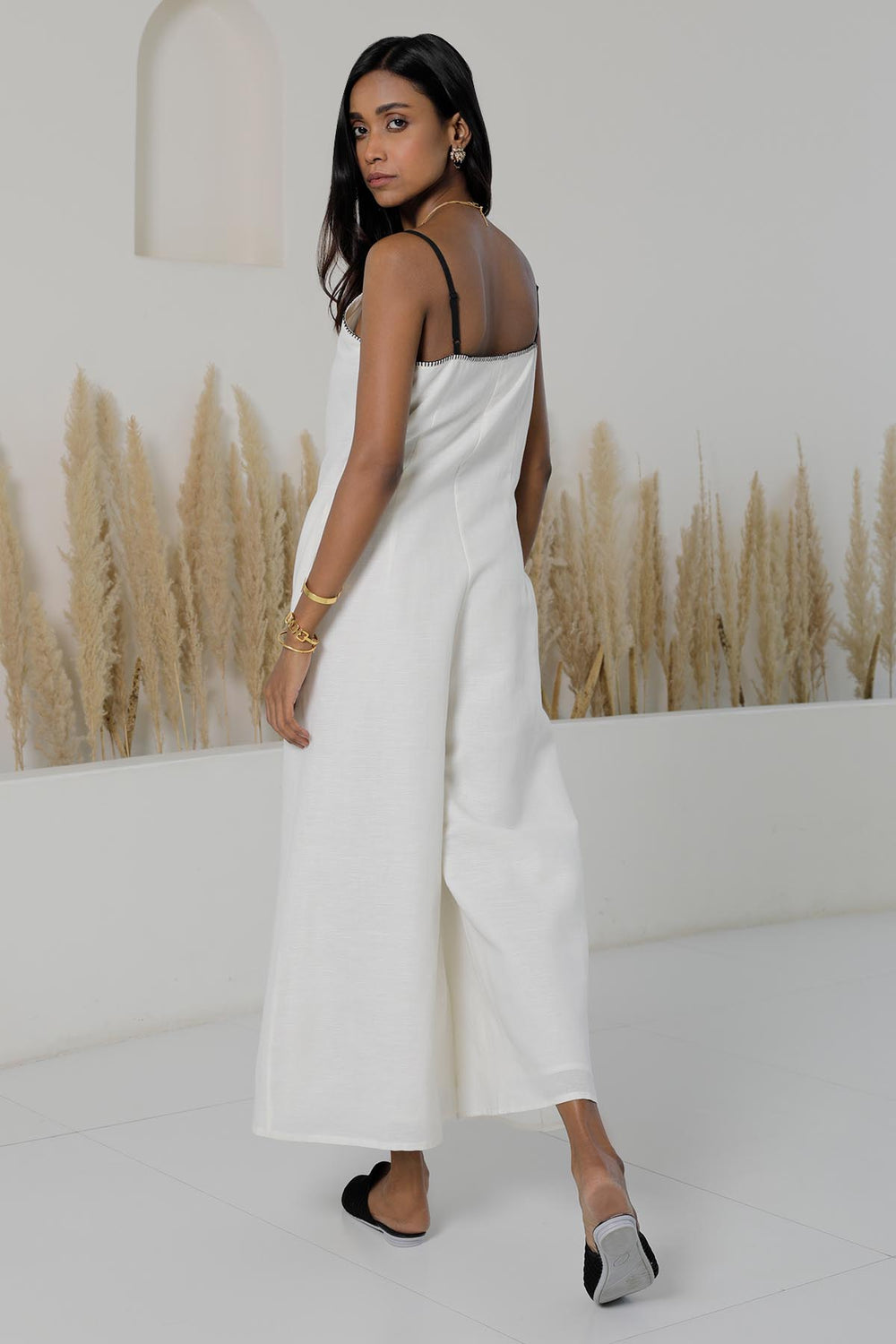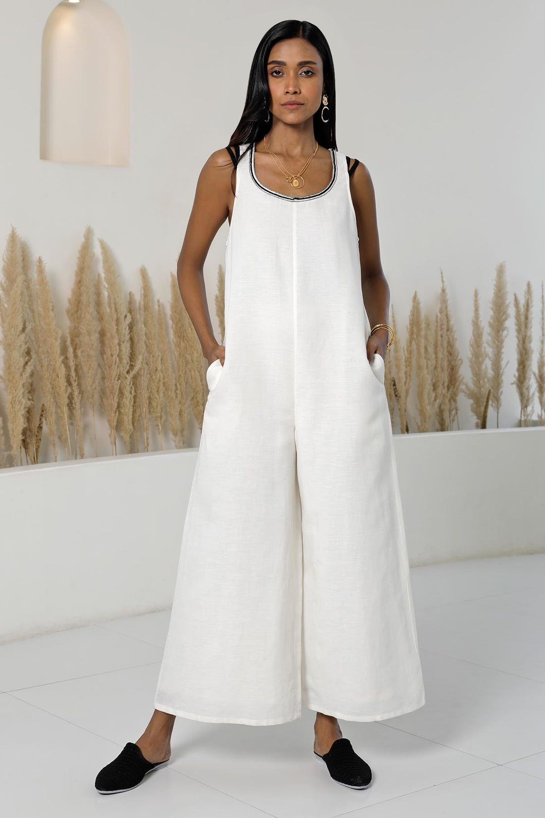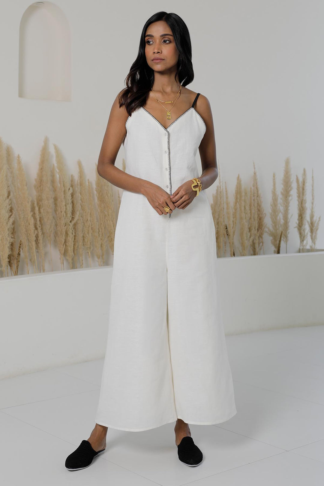 To get a casual look wear a cotton jumpsuit for women with flat sandals and a sunhat to get a relaxed, and summery vibe. Try Sienna Culotte's Jumpsuit Ivory or Blanco Jumpsuit with an overlapped panel. -