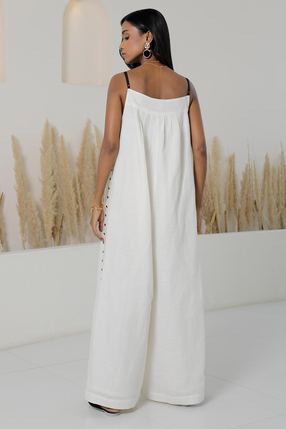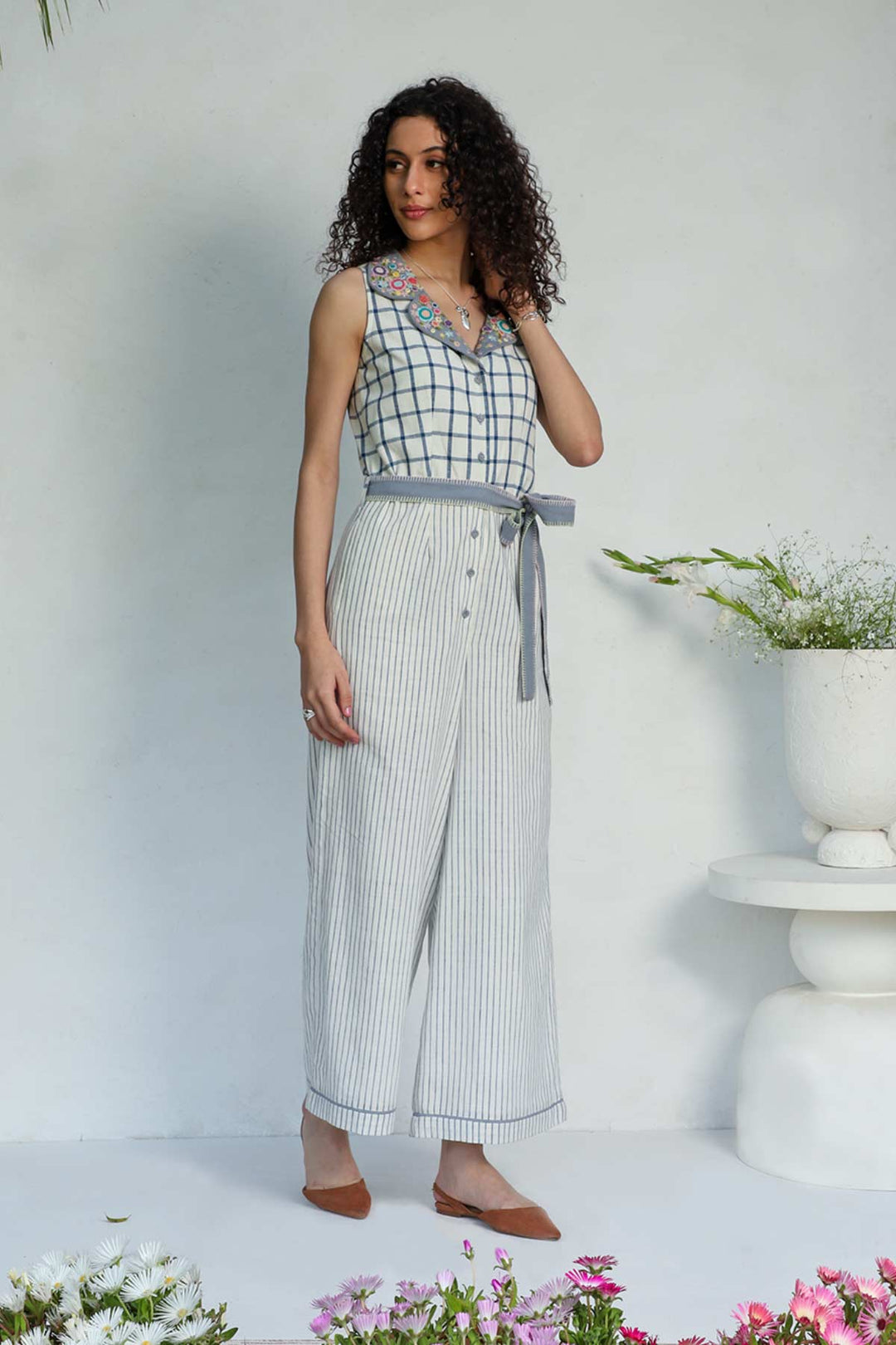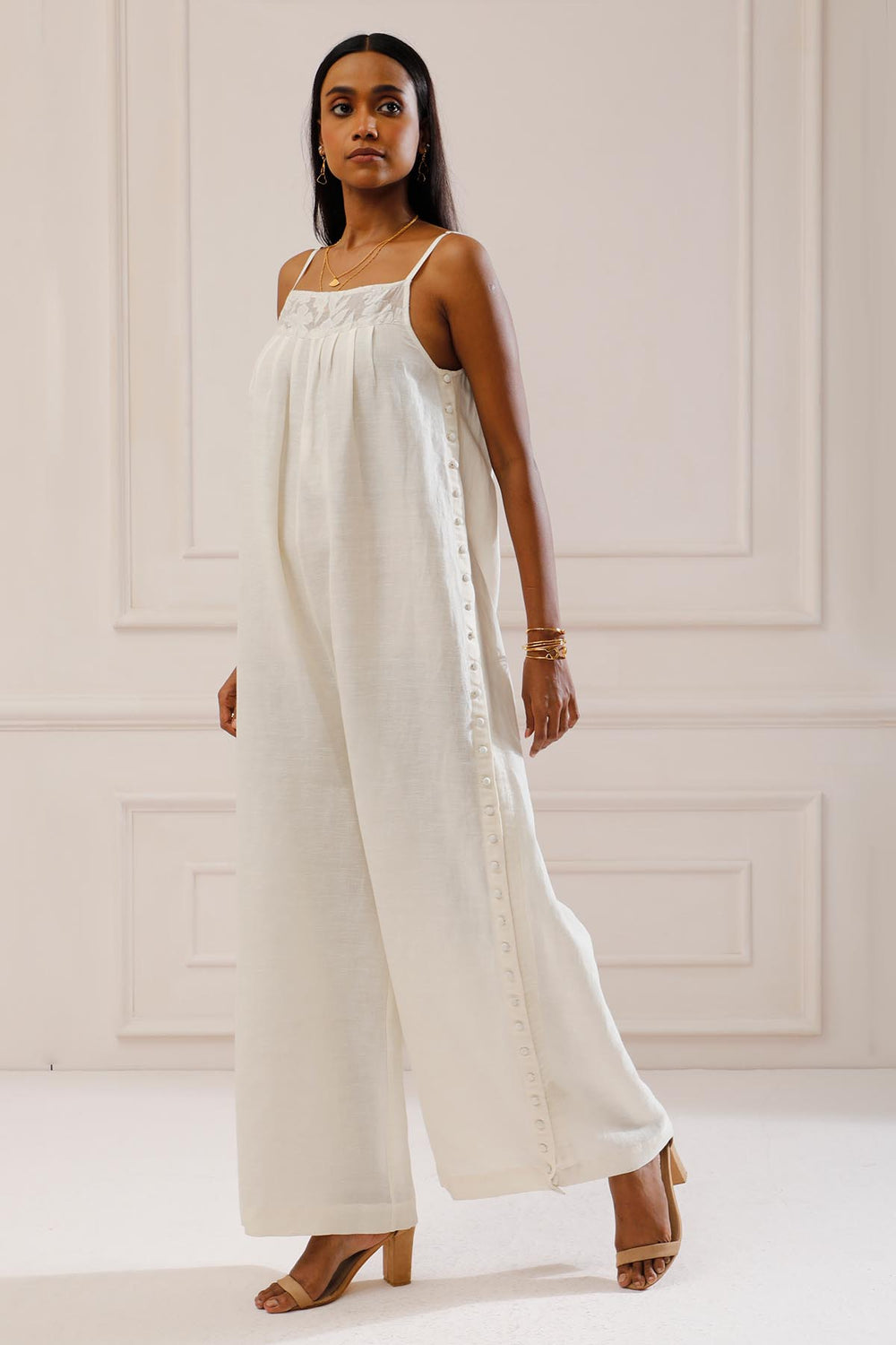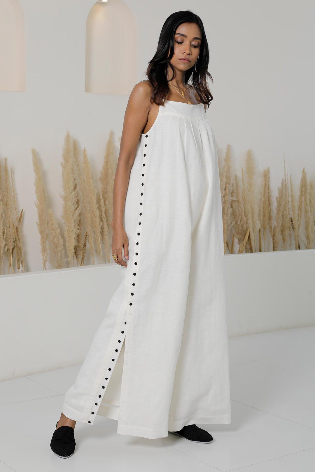 To get a casual look wear a cotton jumpsuit for women with flat sandals and a sunhat to get a relaxed, and summery vibe. Try Sienna Culotte's Jumpsuit Ivory or Blanco Jumpsuit with an overlapped panel. -