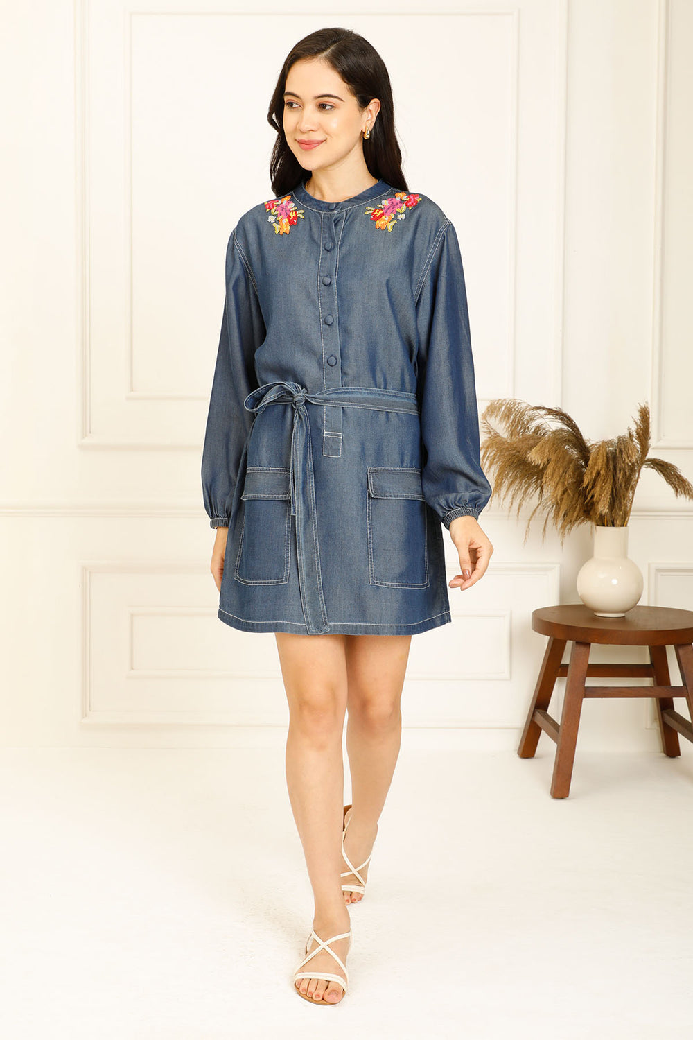 Style the AQUA ANAT short dress with floral embroidery and motif sleeves for a chic look, perfect for a night party or any birthday occasion. Else jump into our category of Short Frock for girls to slay the event.