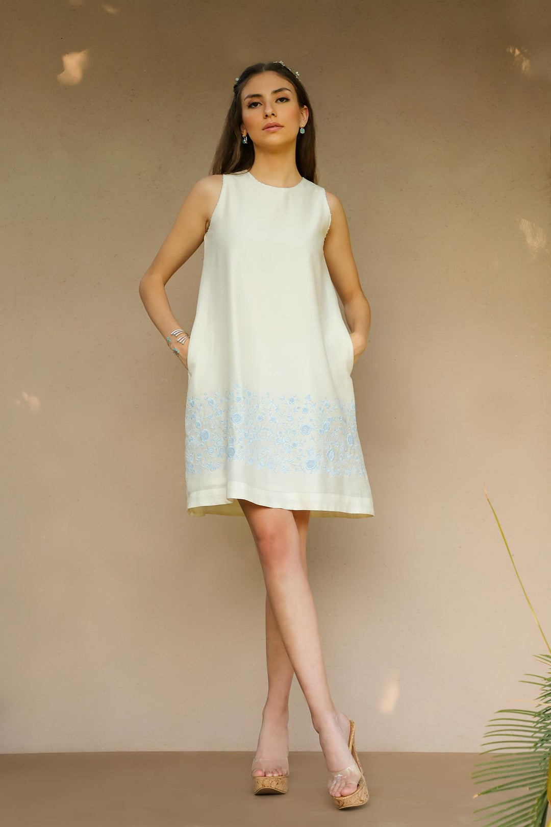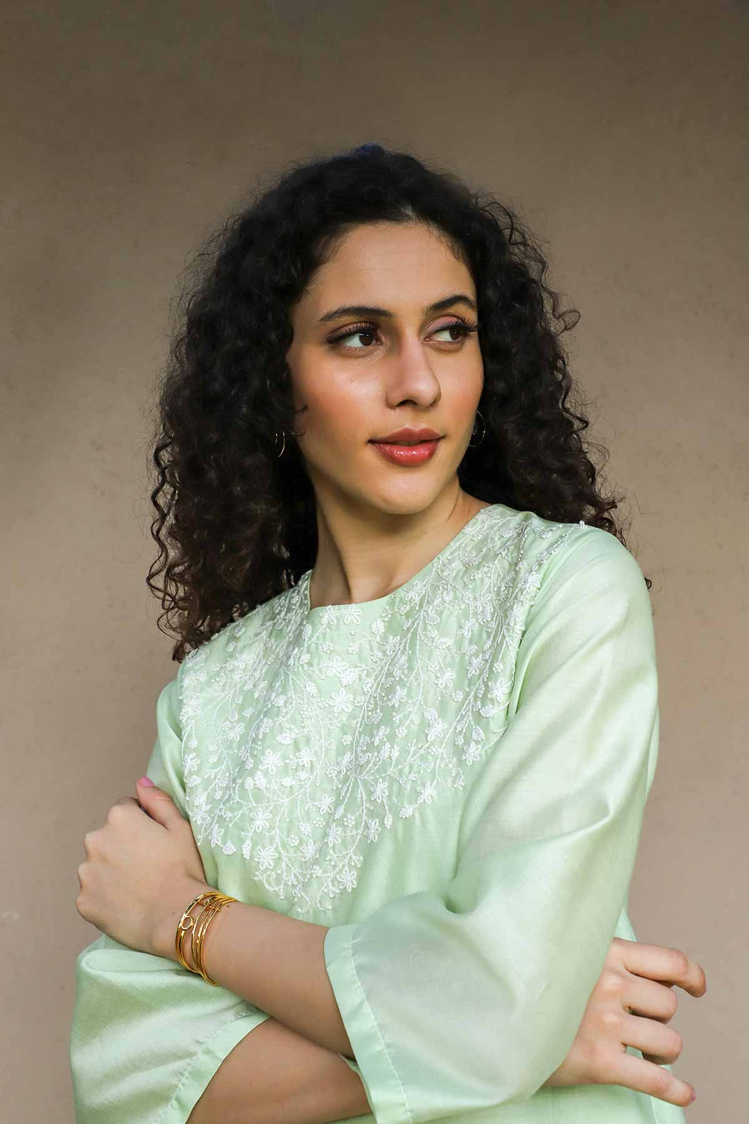 To feel classy and stunning, choose our APRIL MINT short dress for women, made from the finest cotton Chanderi fabric and unmatched quality. -