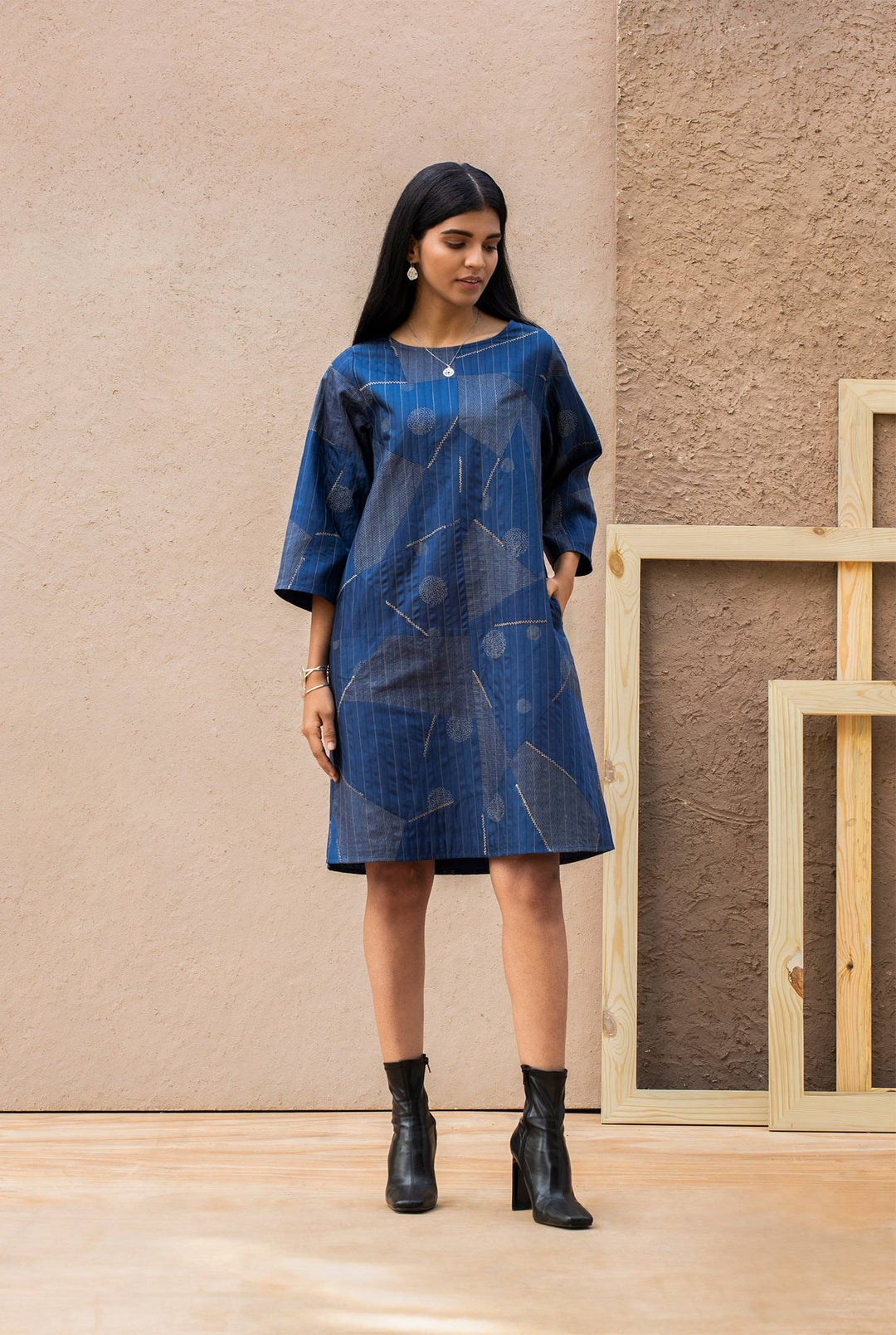 The NOSTALGIA TUNIC Short-length dress for women keeps you stylish and comfortable, focusing on the latest trends and the needs of women in Khadi cotton. -