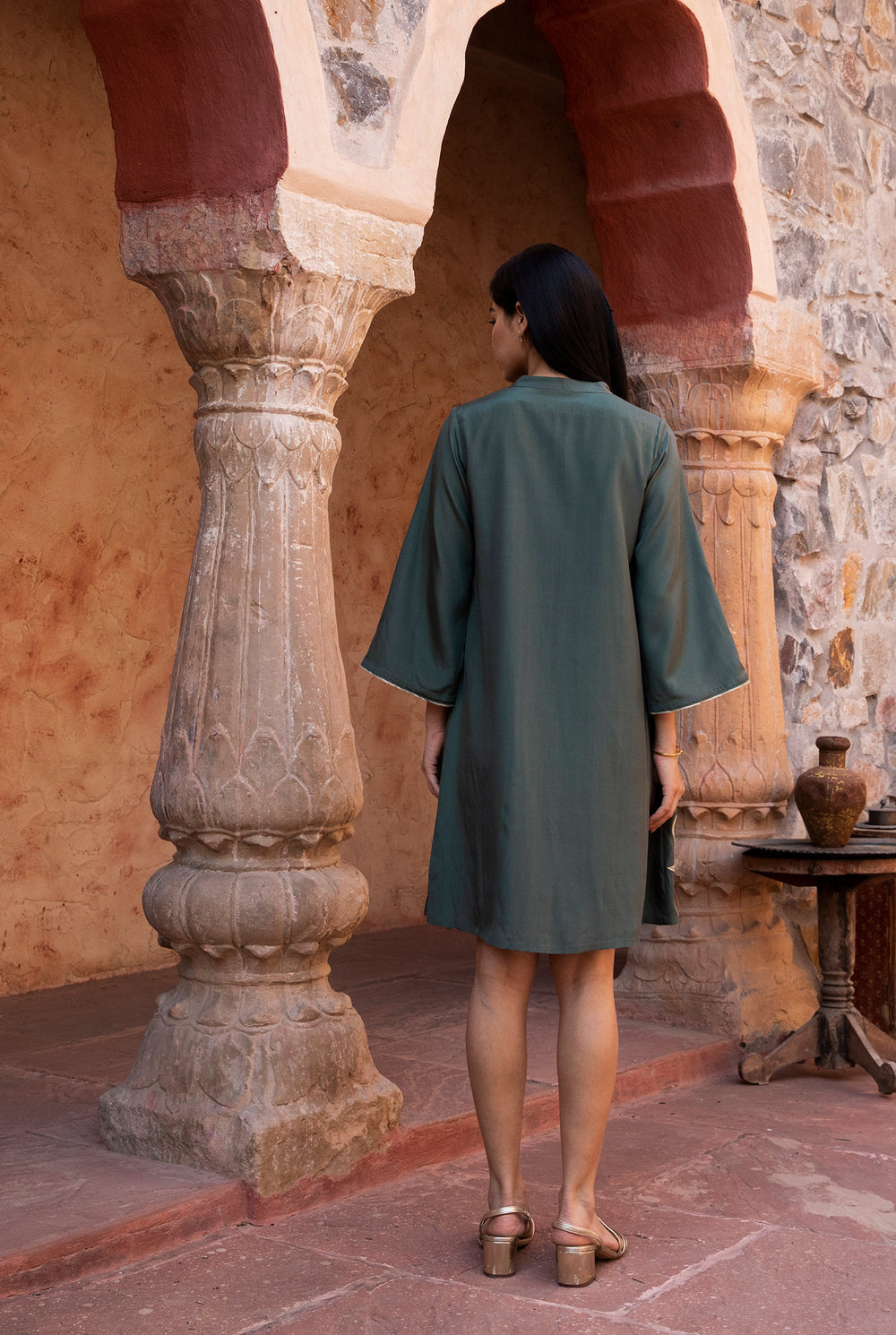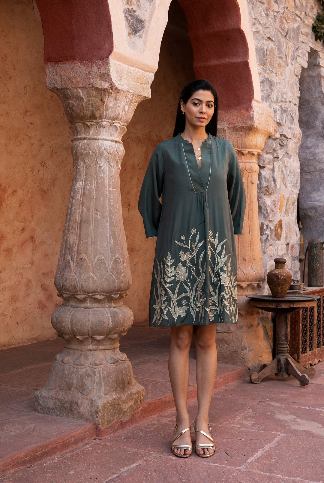 To feel classy and stunning, choose our APRIL MINT short dress for women, made from the finest cotton Chanderi fabric and unmatched quality. -